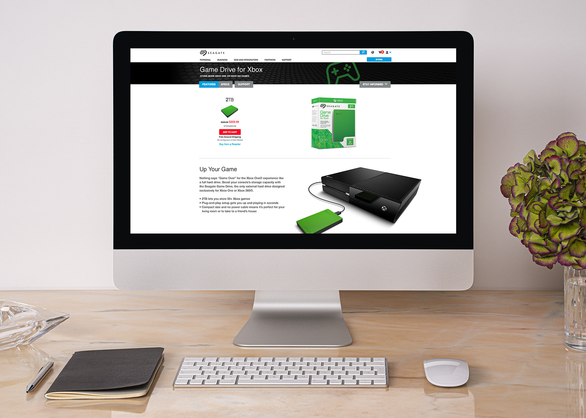 Worked with the marketing team to create a visually engaging story for the new Game Drive for Xbox. Responsible for image concepts and creation and overall page layout.